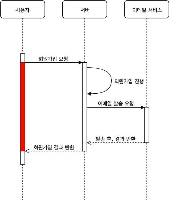 개인적으로 진행중인 한 프로젝트에서, 이메일 인증 기능이 있는 회원 가입을 구현하고 있었습니다. 폼을 모두 작성하고, 가입 요청하는 단계에서 평균 5초간 지연이 발생했습니다. 5초는 사용자가 느끼기에 굉장히 긴 시간입니다. (버튼을 누르고 5초동안 아무것도 못하고 기다린다고 상상해보세요.) 그래서 반드시 해결해야 하는 문제라 판단하고, 어디가 문제인지 로그를 남기면서 파악해보기 시작했습니다. 그 결과, 회원 가입 과정에서 인증용 이메일을 발송하는 곳에서 병목이 발생한다는 사실을 알아냈습니다.